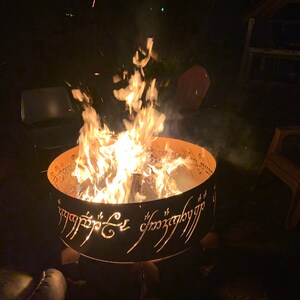Buyers are responsible for return shipping costs. Ring has a plain steel finish that will naturally rust over time. This incredible lord of the rings fire pit and eye tower fire pit are available on etsy! It took a little bit of time to find and download the elvish font. It features an 8″ wide version of the one ring, sauron and a food tray that swings in and out of the fire pit for those that want to do a little grilling over an open flame.